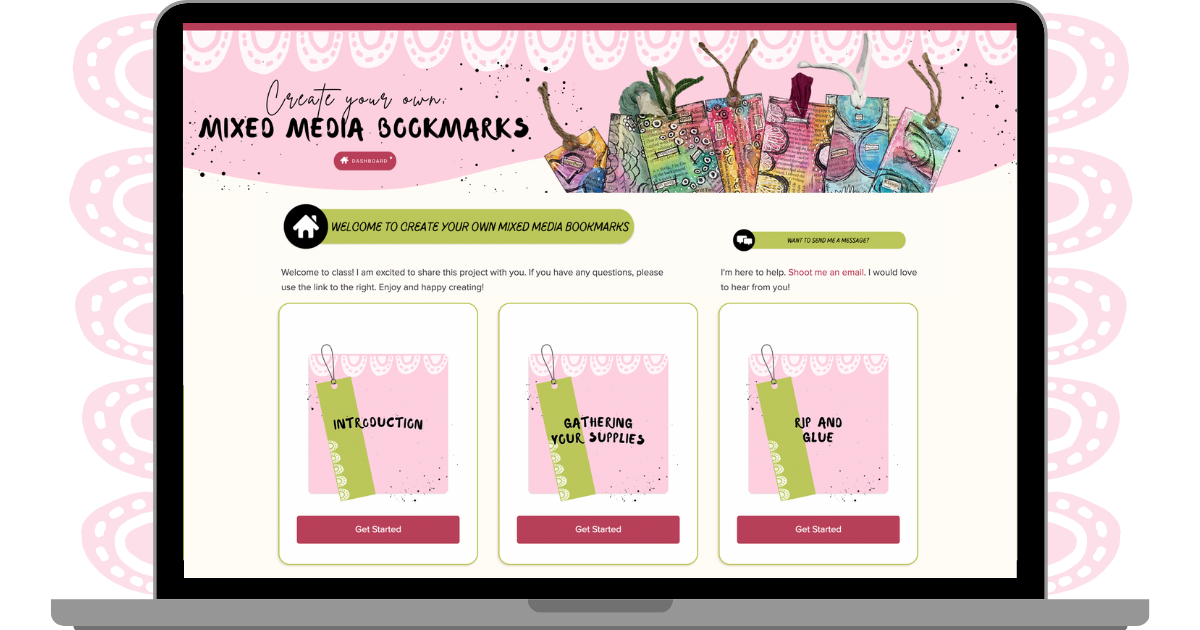Join me as I walk you through the process of adding lots of mixed media layers to create your own unique set of bookmarks. My belief is that beginners through experienced mixed media creators will all find enjoyment in this fun, easy class!