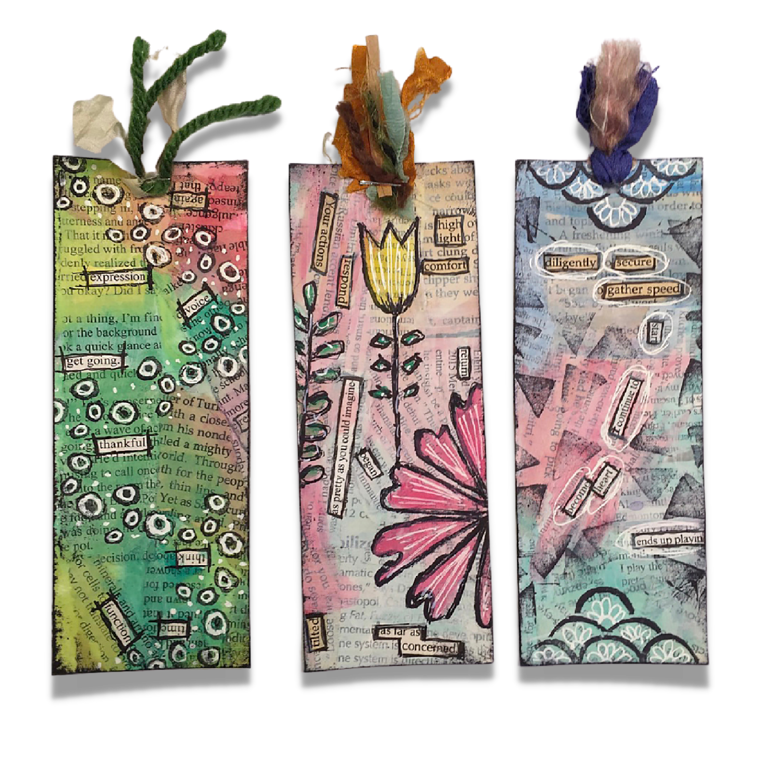 I love to read physical books, so having bookmarks on hand is a must! This bookmark project started out as a quick project for a group of business women who wanted to add a bit of creativity into their day. I expanded the class so that you can make multiple bookmarks at one time...to keep or give away.